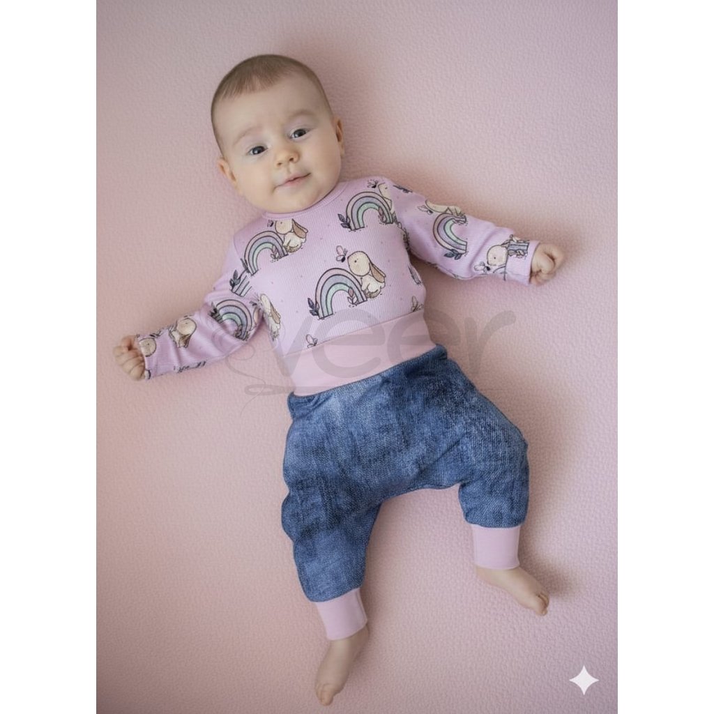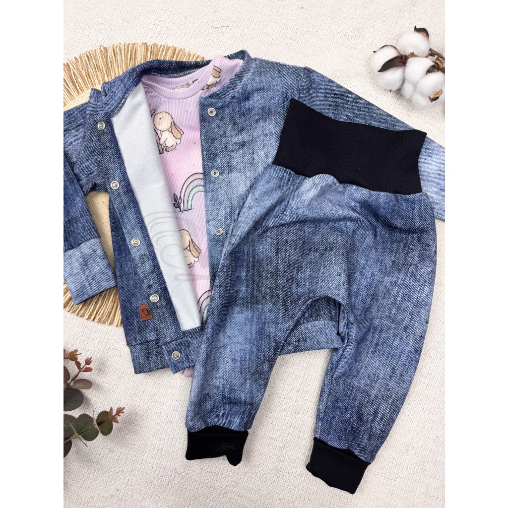 Kdo říkal, že malé miminka nemůžou být stylové a přitom v pohodlí? Kojenecké baggy jsou nepostradatelná součást šatníku miminek od narození. Nový JEANS vzor jim dodá úplně jiný rozměr a přitom budou pořád taaaaak pohodlné. Střih pro každodenní nošení - na doma, na ven, do herniček nebo na návštěvy. Do kočárku i nosítka. Praktický a frajerský kousek, který prostě potřebujete :-))))