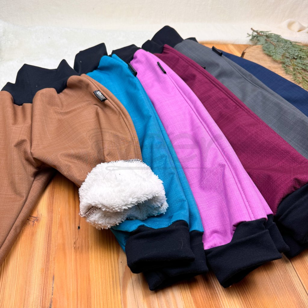 Kalhoty jsou ušity ze zatepleného softshellu s beránkem. Je to funkční membránový materiál, který zajišťuje voděodolnost, ochrání proti větru a zahřeje.