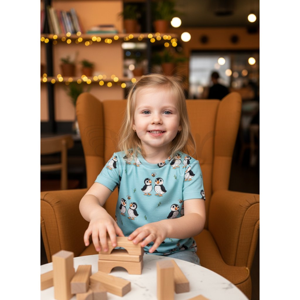 Tričko klasického střihu s krátkým rukávem je každodenní společník menších i větších dětí. Stylový kousek s neokoukaným vzorem upoutá pozornost na první pohled.