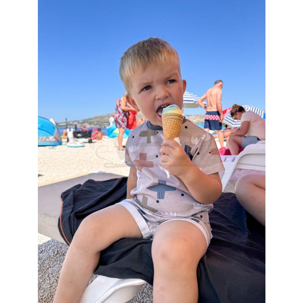 Tričko klasického střihu s krátkým rukávem je každodenní společník menších i větších dětí. Stylový kousek s neokoukaným vzorem upoutá pozornost na první pohled.